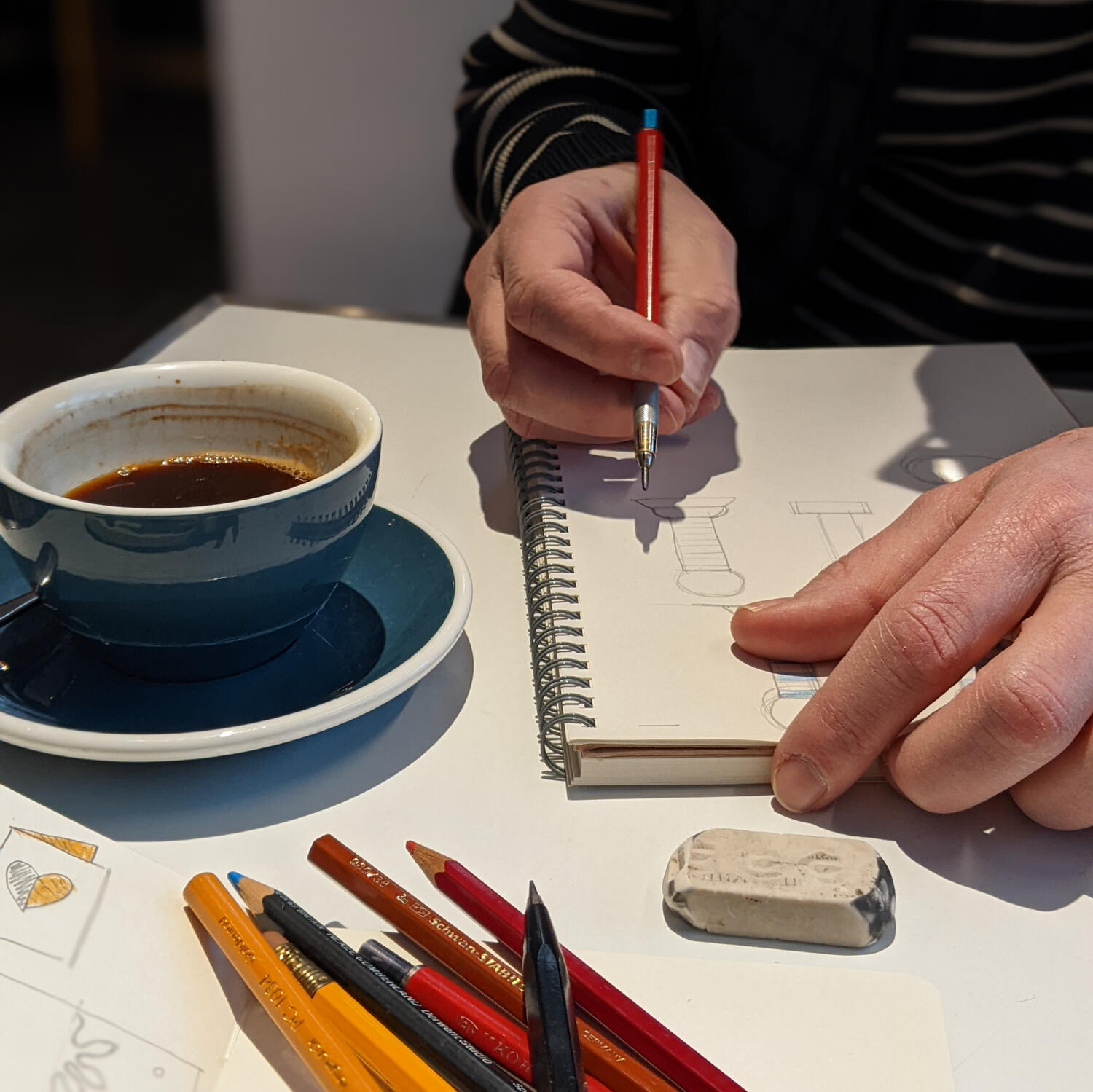 Our practice is research-based, informed by material experimentation and play. What does that mean? It means we read, we listen, we take notes, we sketch, we go for walks, we have another coffee, we make models and wireframes, we throw things up on a wall and step back to gain perspective.
